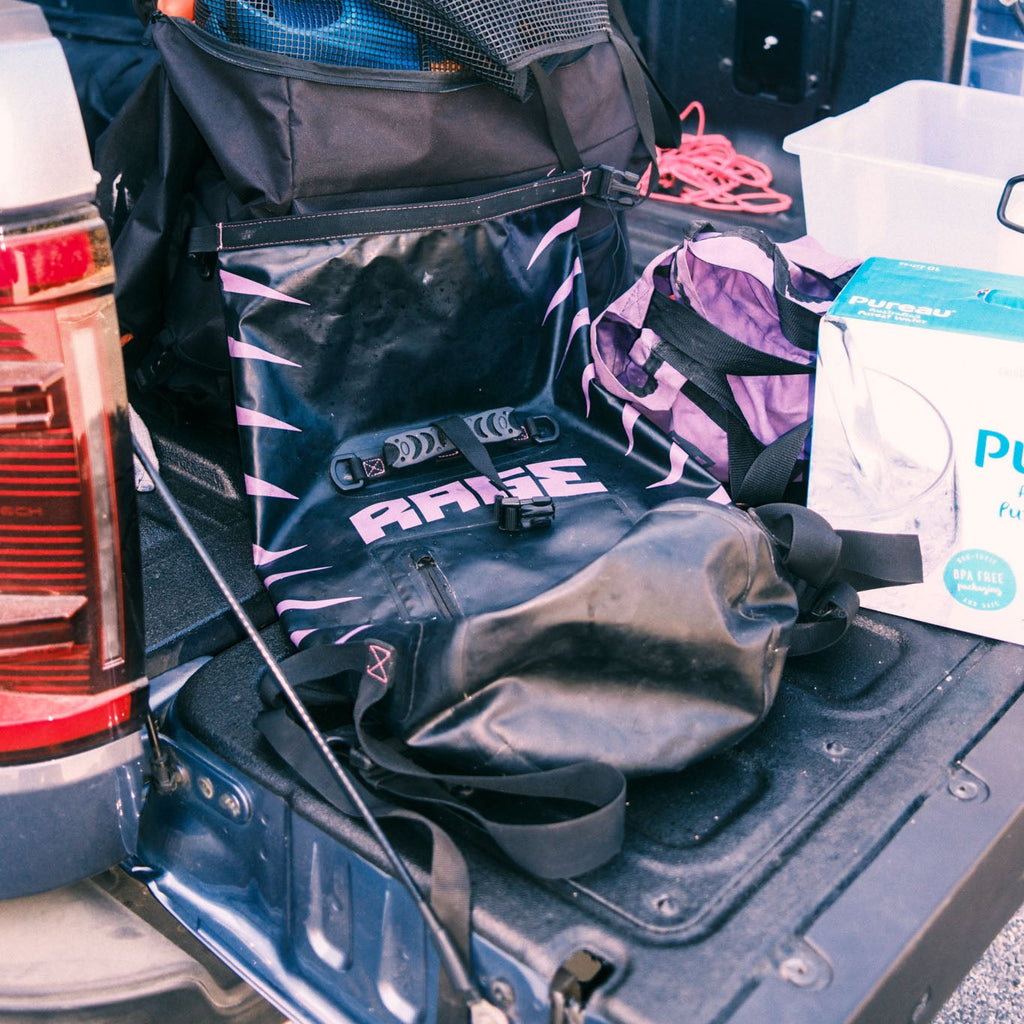 RAGE WET DRY BACKPACK is durable & waterproof. Comfort & versatility tested by the team on the road. It's uses are endless, you can put a wet wetty in there after a surf and you are going to keep dry, you can fill it with beers and ice if you want to go for a post surf mission or you can just use it as your regular daily backpack.